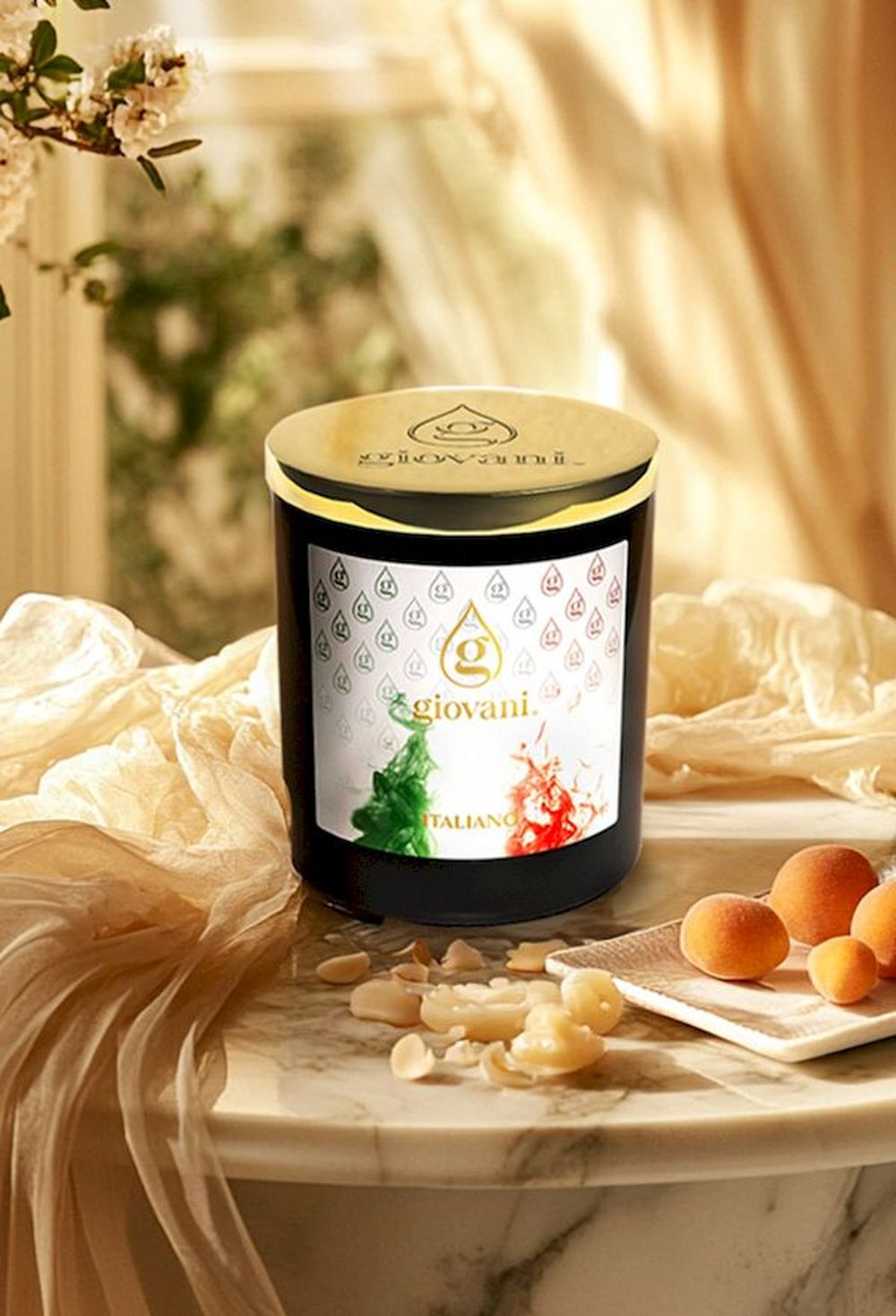 Giovani®-tuoksukynttilät ovat ylellisiä tuoksukynttilöitä, joihin on imeytetty erittäin tiivistettyjä tuoksuöljyjä sertifioidussa luonnollisessa palmuvahassa, jossa on kiteisiä värikuvioita. Ne on aina väriltään sovitettu tietyn Giovani®-tuoksun väriin. Käytetyt hajusteet leviävät aktiivisesti kynttilän palaessa, jolloin ilmaan vapautuu ainutlaatuisia tuoksuja.