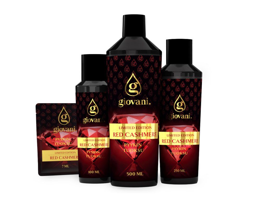 Giovani® on eksklusiivinen ja ylellinen pyykkituoksujen brändi. Olemme panostaneet erityisen paljon niiden korkeaan laatuun. Näitä tuoksuja kehittäessämme meille oli tärkeää saavuttaa vahva intensiivisyys ja pitkäkestoinen tuoksu, jotta Giovani® voidaan lukea markkinoiden laadukkaimpiin pyykkituoksuihin. Niiden suuri etu on, että ne eivät tuki pesukonetta, eivät jätä rasvaista jäämää eivätkä tahraa vaatteita. Tiettyjen ainesosien ansiosta öljymme huolehtivat myös pyykin väreistä. Ne ovat vegaanisia ja vapaita dioksaanista, SVHC-aineista, parabeeneista, tensideistä, PBT/vPvB-aineista, raskasmetalleista, saastuttavista jäämistä, mikro- tai nanomuoveista. Giovani®-brändin ainutlaatuisuutta korostaa myös sen ylellinen design. Olemme ylpeitä myös 24 tunnin toimituksesta ja nopeasta asiakaspalvelusta. |